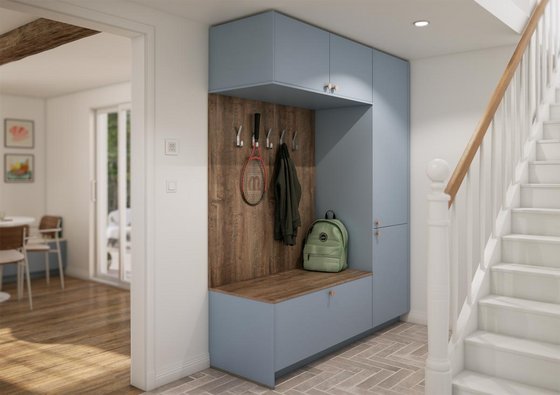 On pose ça là : quand les meubles d’entrée sont coordonnés à la cuisine et qu’en plus c’est fonctionnel, c’est la classe absolue.