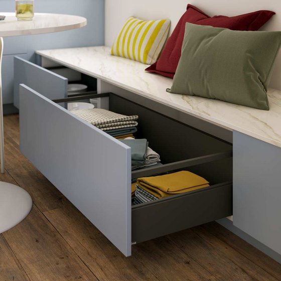 Pourquoi se contenter de s’asseoir quand on peut twister son siège en rangement malin ? En plus, il optimise le volume de la pièce en lieu et place de meubles hauts.