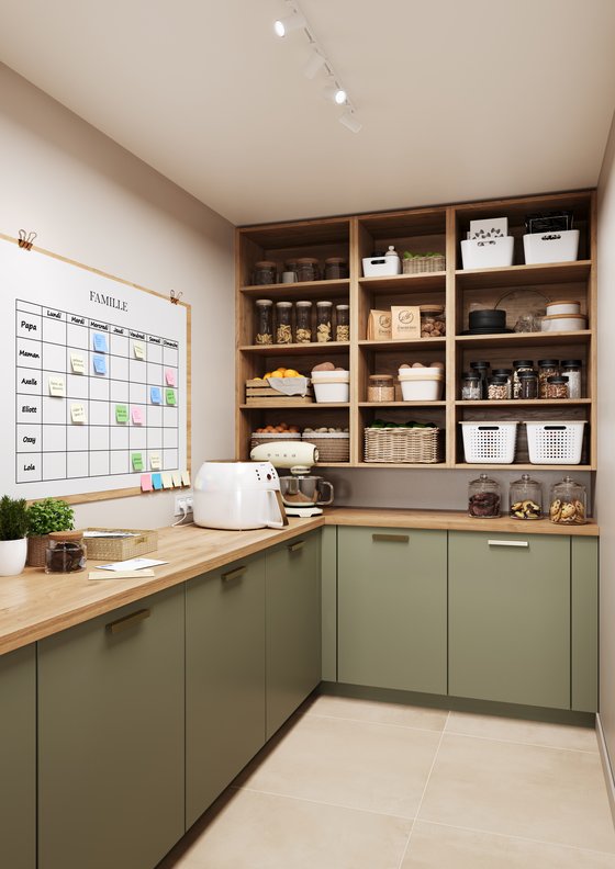 Une pièce pensée pour stocker, organiser, respirer. Des étagères accessibles, des zones dédiées : ici, tout a sa place – et tout le monde gagne en sérénité.
