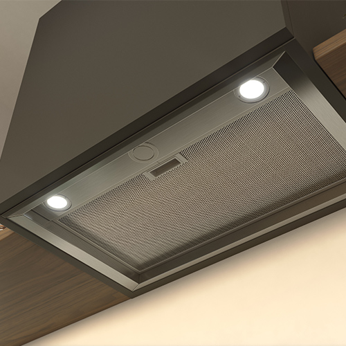 Une hotte, oui… mais avec éclairage intégré, pour un maximum de gain de place, de visibilité et de sécurité lorsque vous cuisinez !