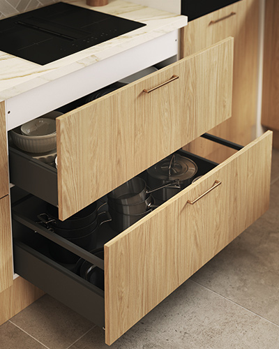 Avec ses tiroirs spacieux et parfaitement organisés, le casserolier permet de ranger casseroles, poêles et ustensiles en toute simplicité. Tout est visible, accessible et bien ordonné pour cuisiner efficacement, même quand le rythme s’accélère